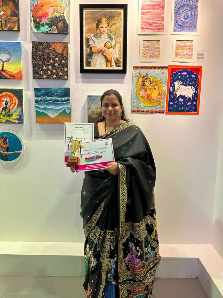 She has showcased Indian Pattachitra Art in an International platform of World Art Dubai (where the world’s art comes together) . World Art Dubai exhibited more than 4000 artworks from 300+ renowned galleries and solo artists, hailing from 60+ countries around the world.